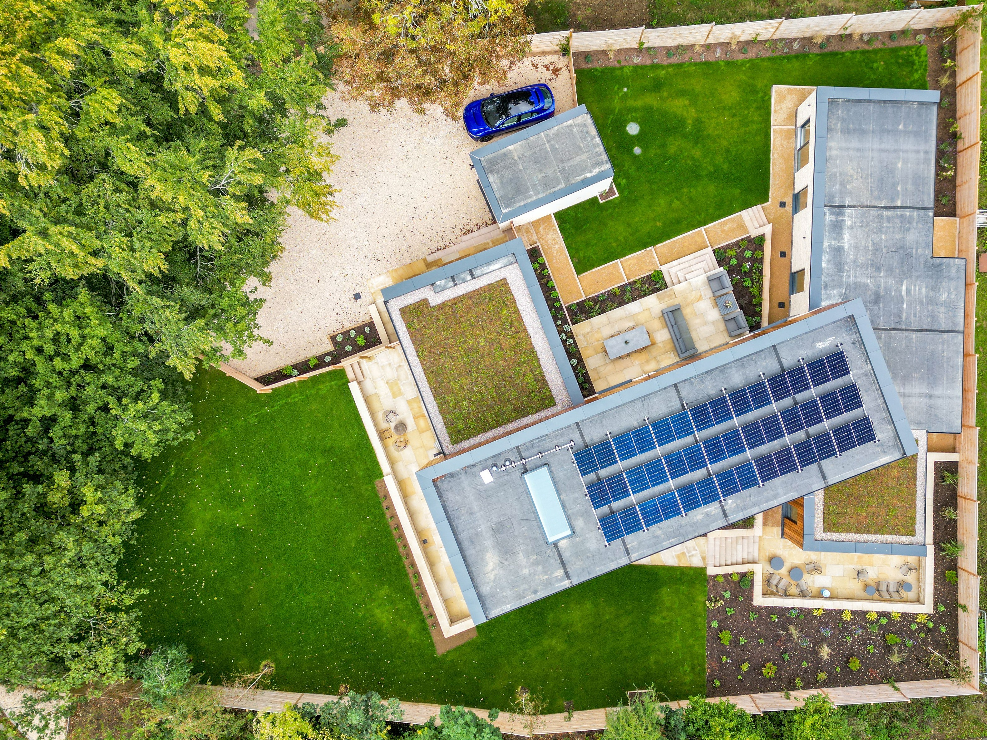 Lyncroft South, a five bedroom home, was completed in 2025 and features minimalist architectural design, cutting-edge eco-technology, thoughfully landscaped gardens, and views of Cotswold countryside.